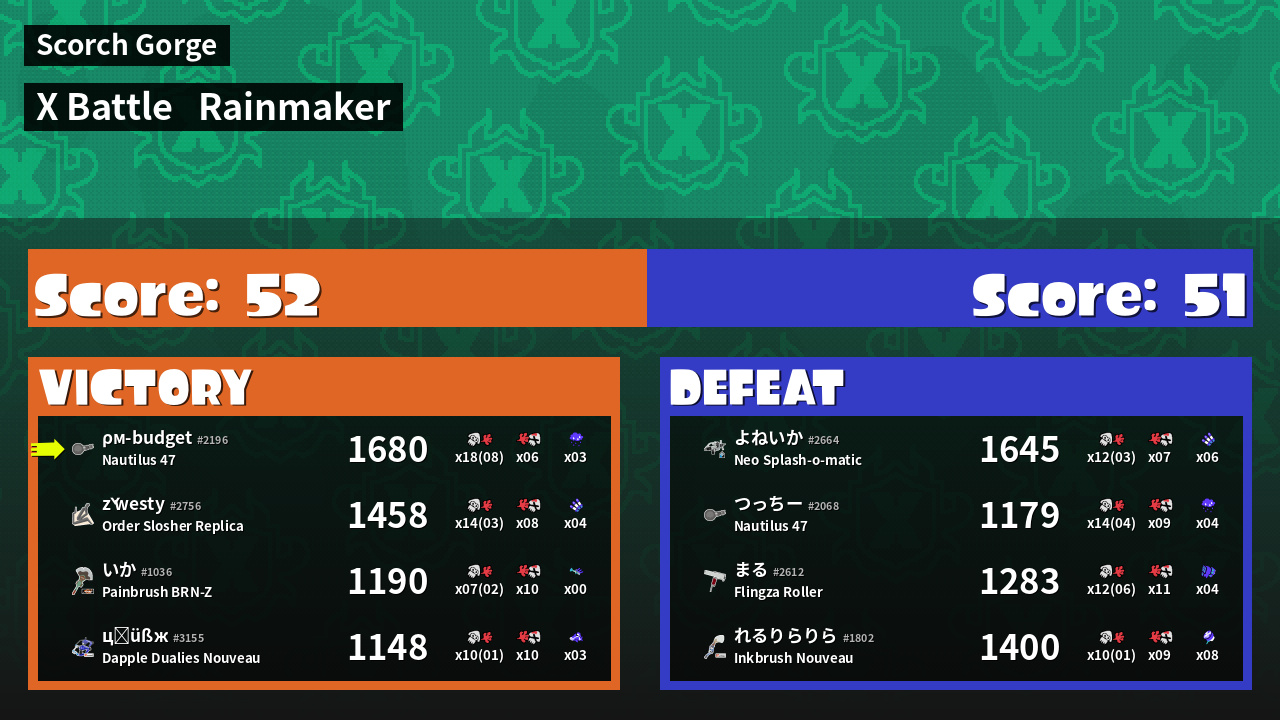 | Mode | Rainmaker - X Battle | ||