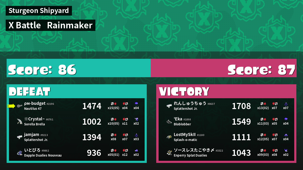| Weapon | Nautilus 47 ( Point Sensor / Ink Storm) | ||