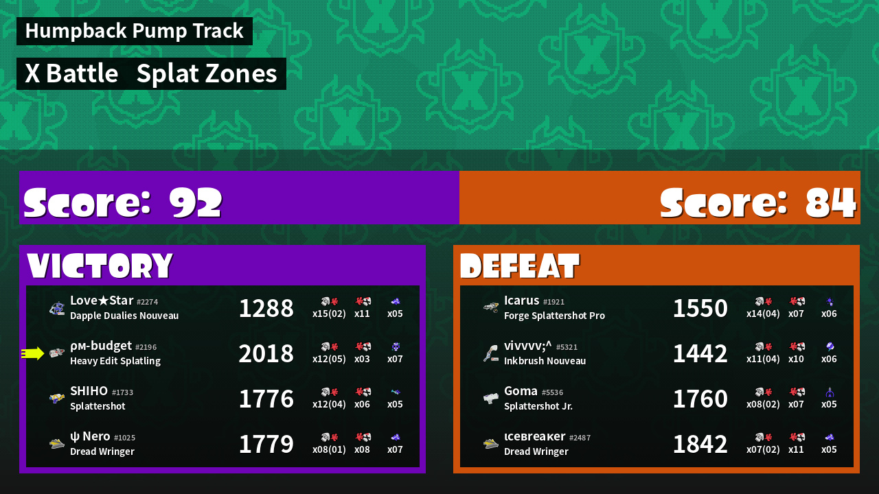 | Medals | #1 Splat Zone Inker #1 Turf Inker #1 Popular Target | ||