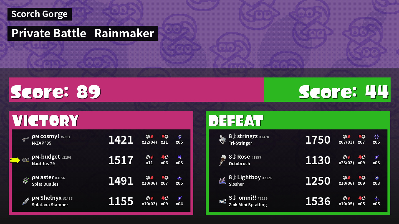 | Medals | #1 Turf Inker #1 Super Jump Spot #1 Enemy Splatter | ||