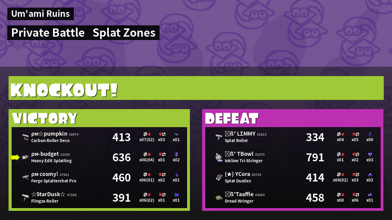 | Mode | Splat Zones - Private Battle | ||
