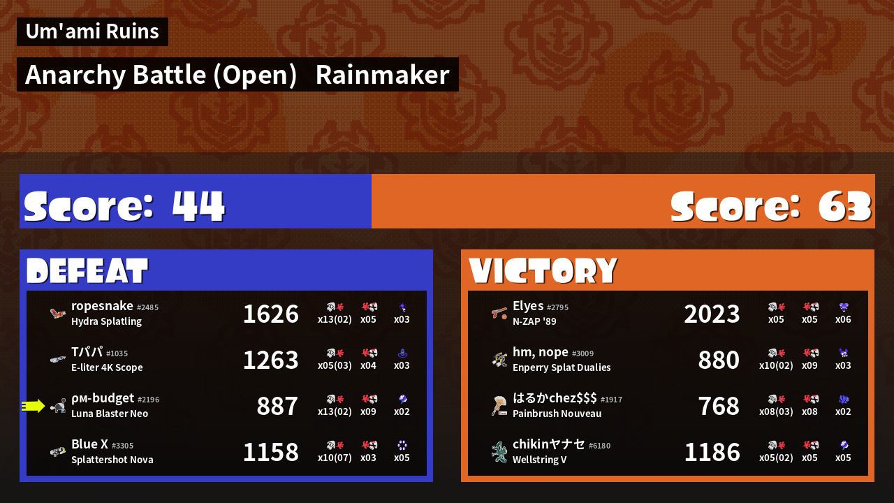 | Mode | Rainmaker - Anarchy Battle (Open) | ||