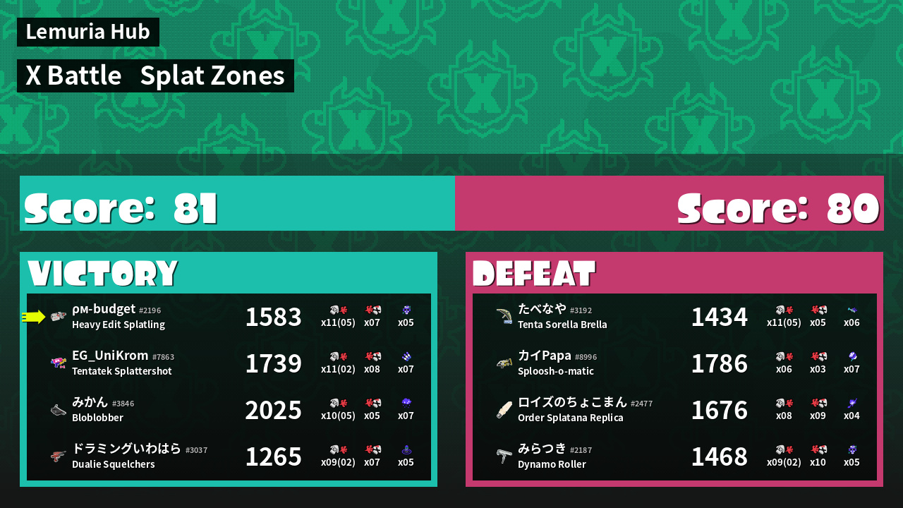 | Medals | #1 Overall Splatter #1 Splat Zone Inker #1 Splat Assister | ||