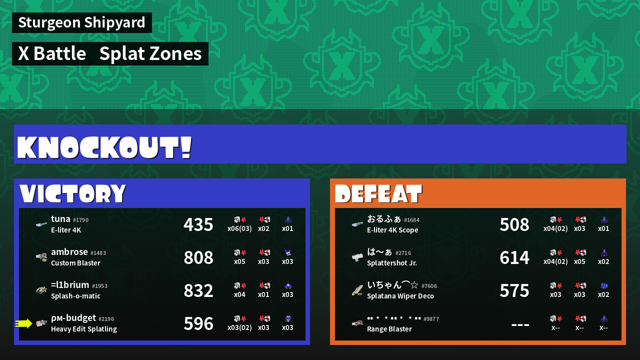 | Mode | Splat Zones - X Battle | ||