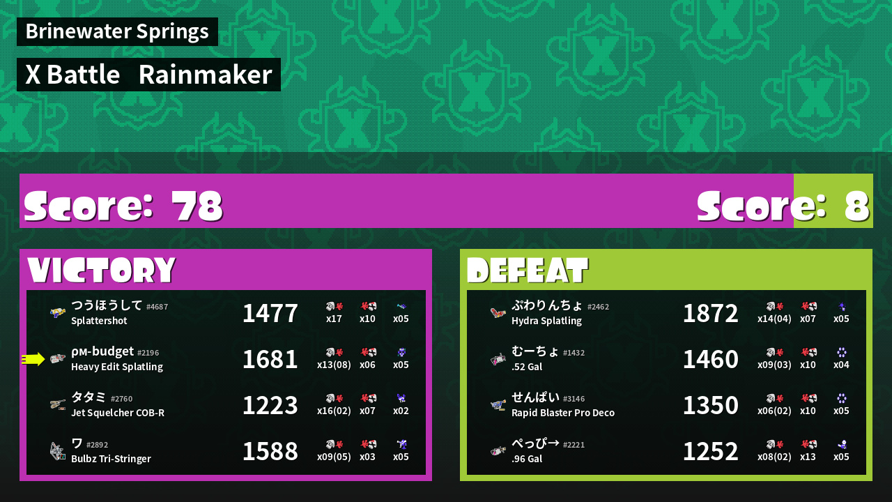 | Mode | Rainmaker - X Battle | ||