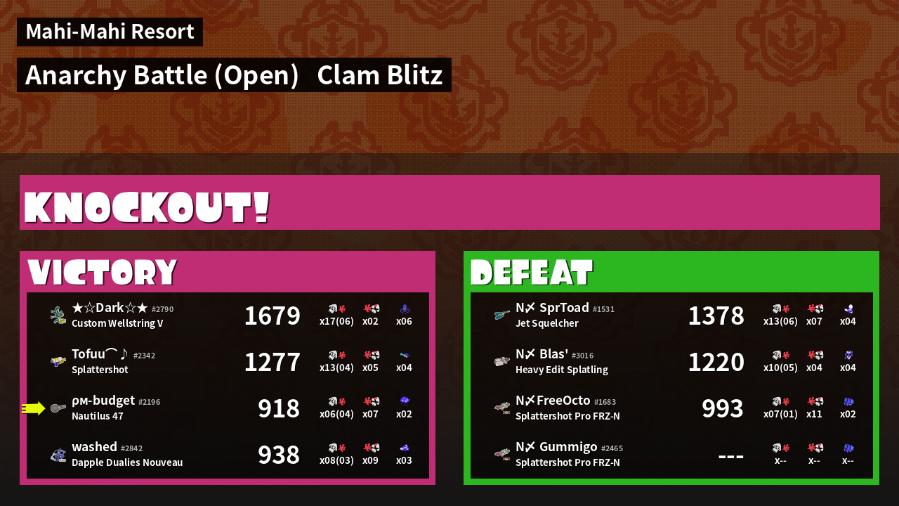 | Mode | Clam Blitz - Anarchy Battle (Open) | ||