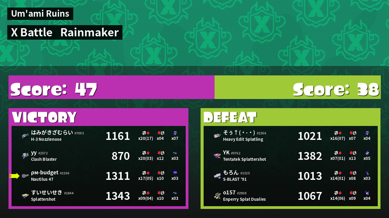 | Mode | Rainmaker - X Battle | ||