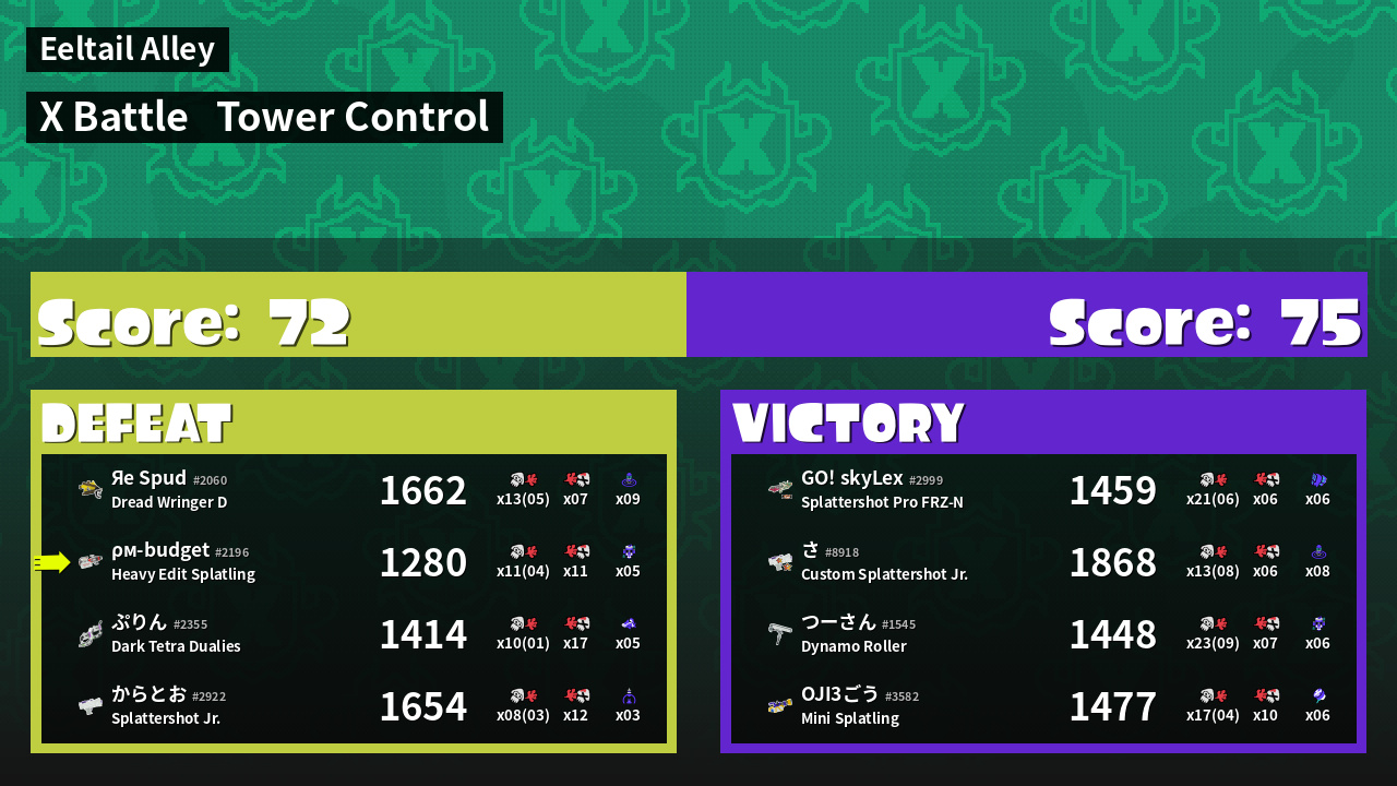 | Mode | Tower Control - X Battle | ||