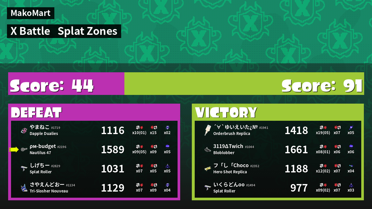 | Mode | Splat Zones - X Battle | ||
