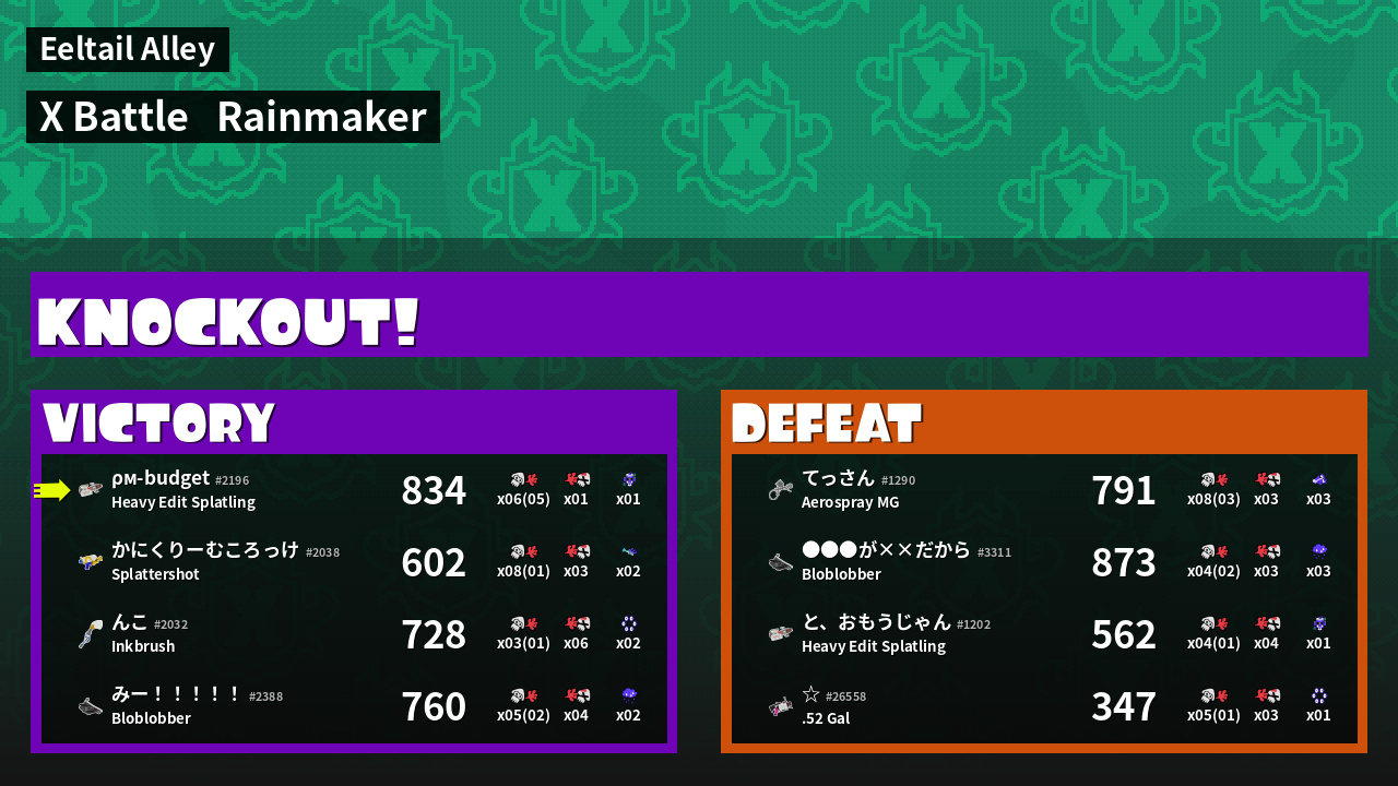 | Mode | Rainmaker - X Battle | ||