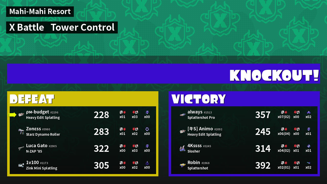 | Mode | Tower Control - X Battle | ||