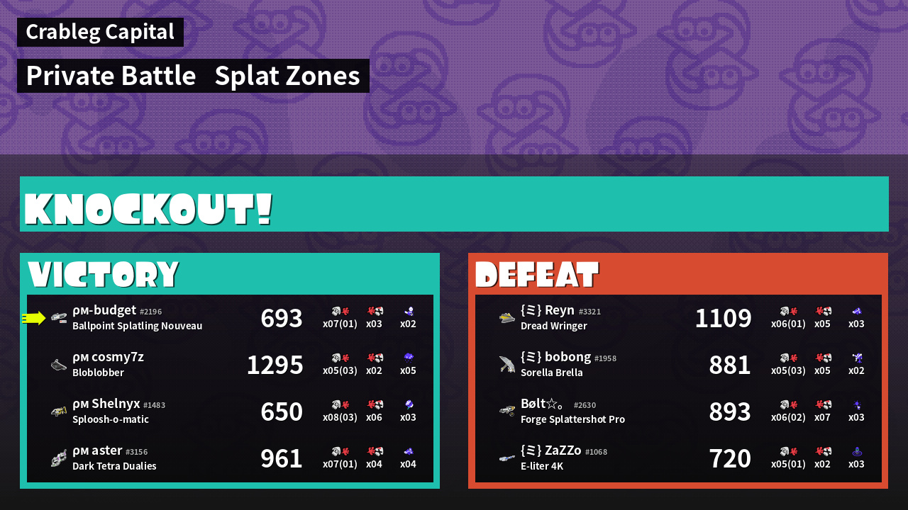 | Mode | Splat Zones - Private Battle | ||