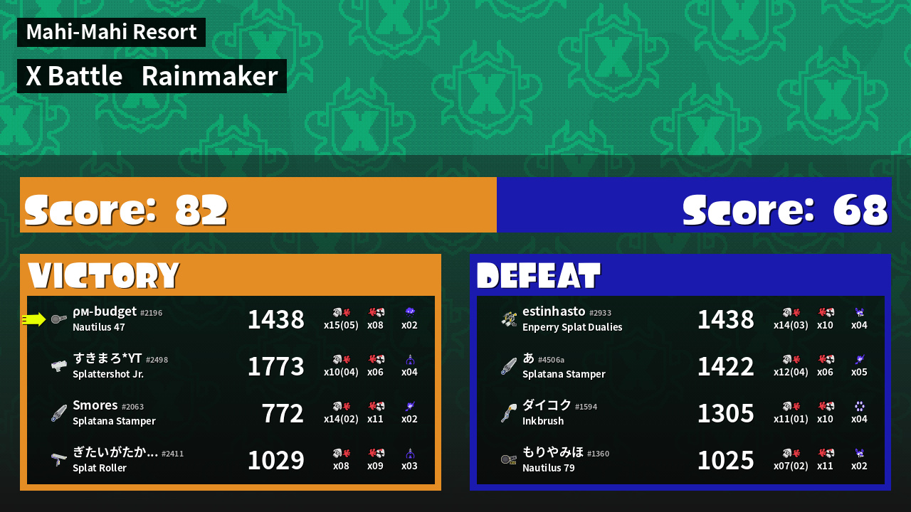 | Medals | #1 Overall Splatter #1 Score Booster #1 Splat Assister | ||