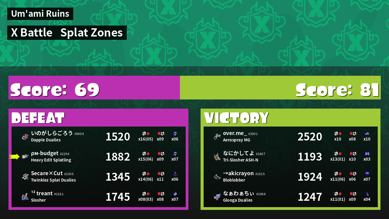 | Medals | #1 Splat Zone Inker #1 Turf Inker #1 Splat Assister | ||