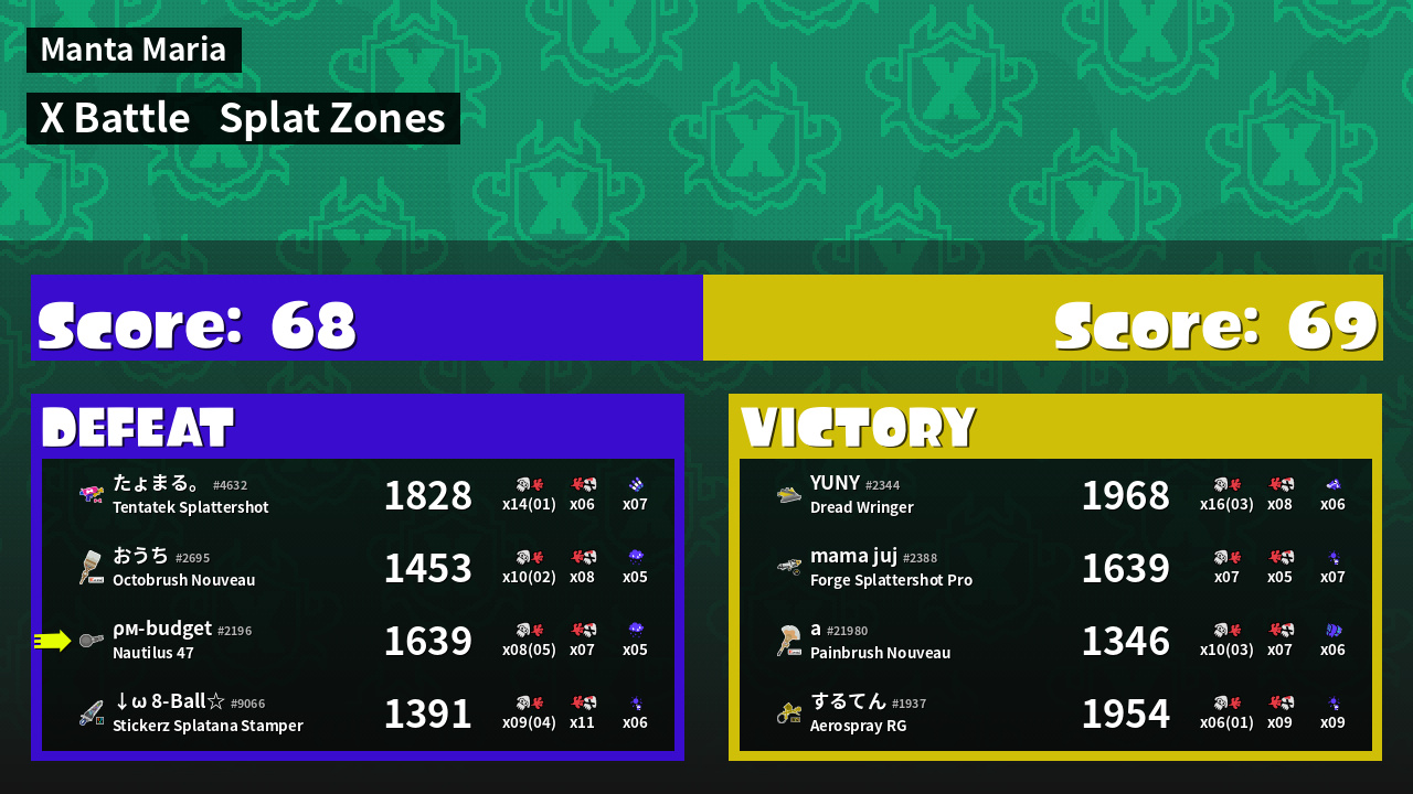 | Mode | Splat Zones - X Battle | ||