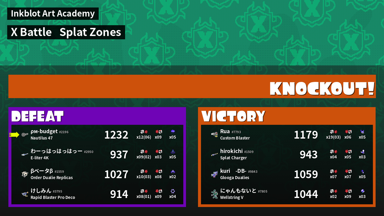 | Medals | #1 Overall Splatter #1 Splat Zone Inker #1 Splat Zone Guard | ||