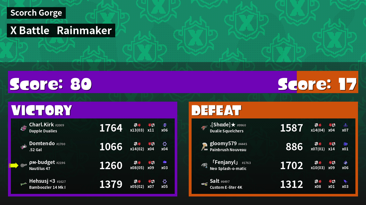 | Medals | #1 Popular Target #1 Splat Assister #1 Checkpoint Breaker | ||