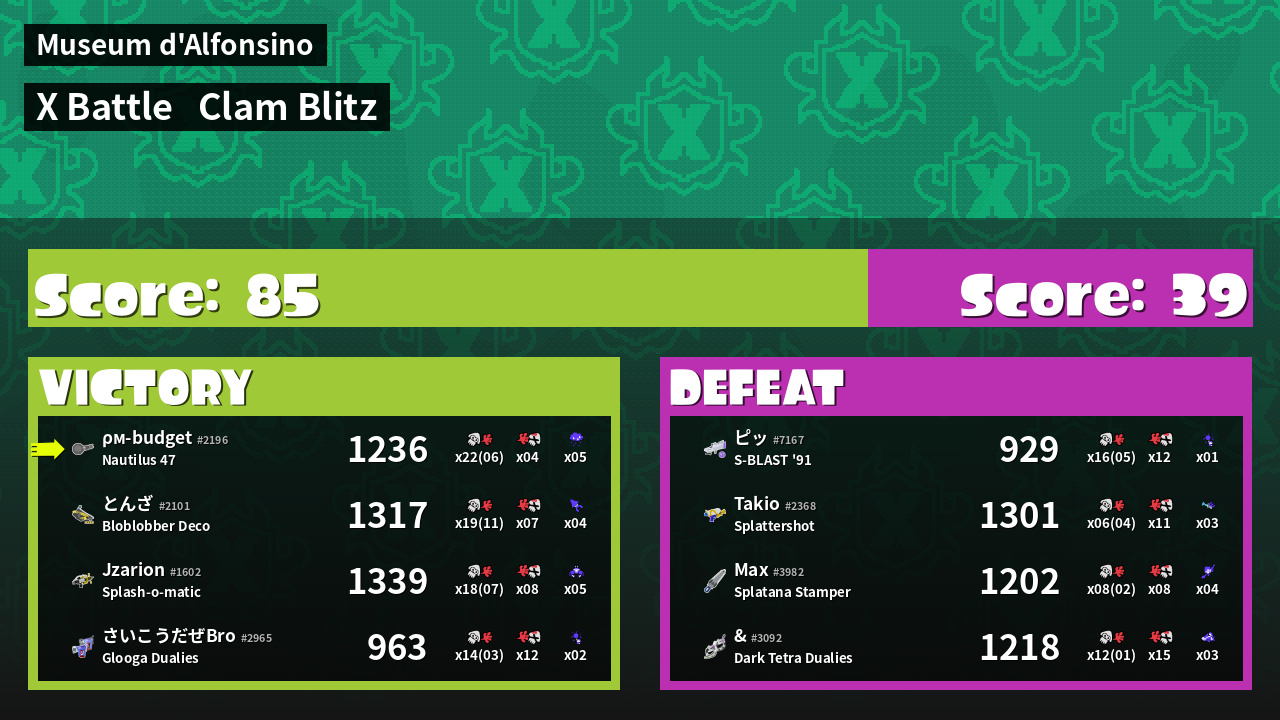 | Medals | #1 Overall Splatter #1 Score Booster #1 Clam Carrier | ||