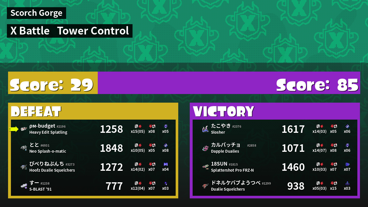 | Mode | Tower Control - X Battle | ||