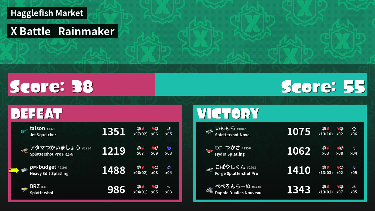 | Mode | Rainmaker - X Battle | ||