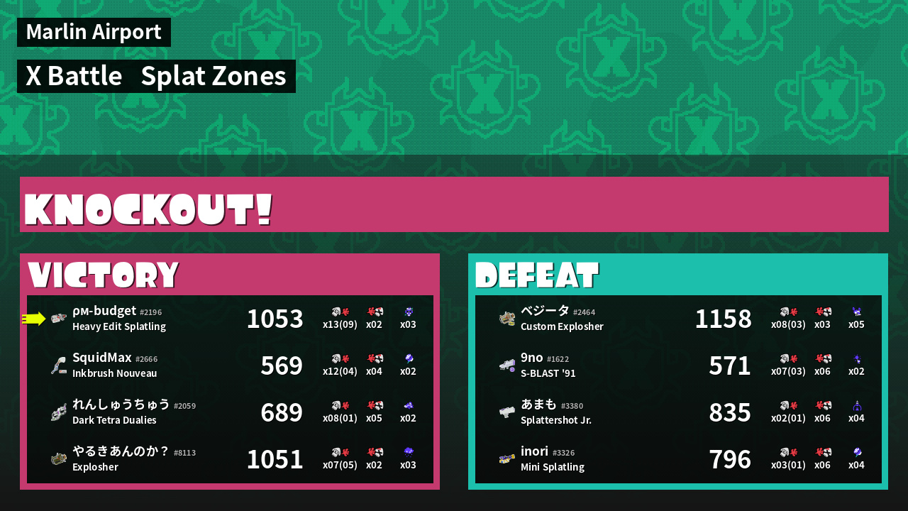 | Mode | Splat Zones - X Battle | ||