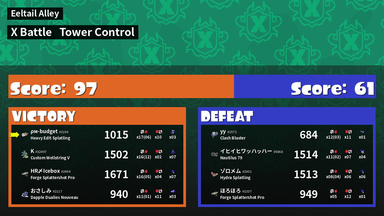 | Mode | Tower Control - X Battle | ||