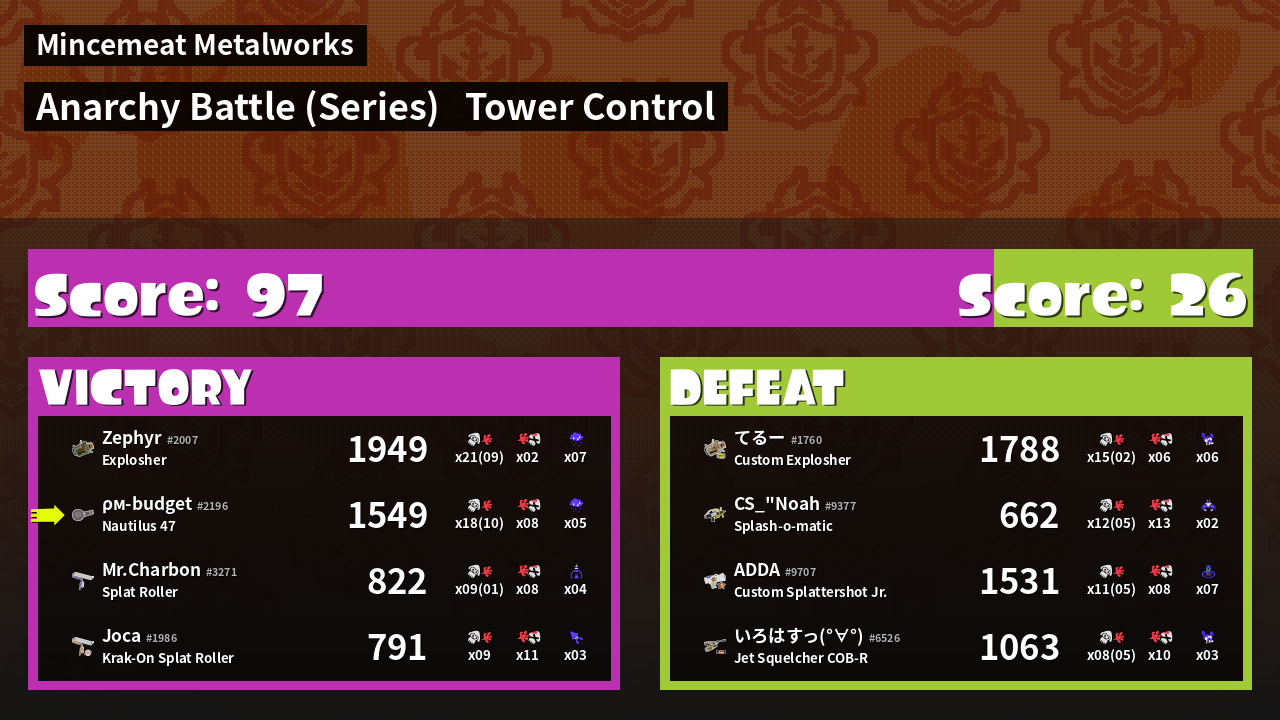 | Mode | Tower Control - Anarchy Battle (Series) | ||