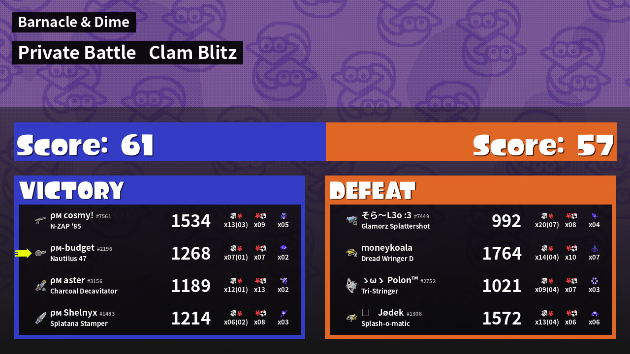 | Mode | Clam Blitz - Private Battle | ||