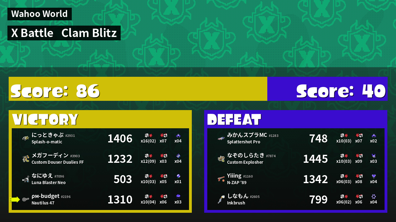 | Medals | #2 Clam Carrier #2 Turf Inker #2 Splat Assister | ||