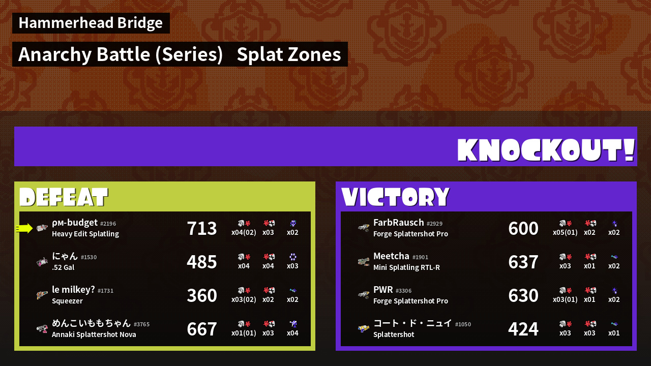 | Mode | Splat Zones - Anarchy Battle (Series) | ||