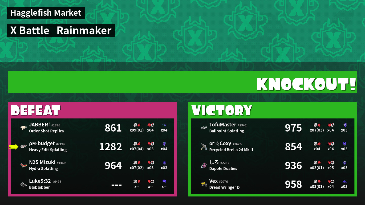 | Weapon | Heavy Edit Splatling ( Curling Bomb / Tacticooler) | ||