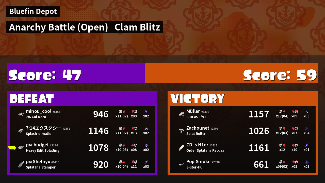 | Mode | Clam Blitz - Anarchy Battle (Open) | ||