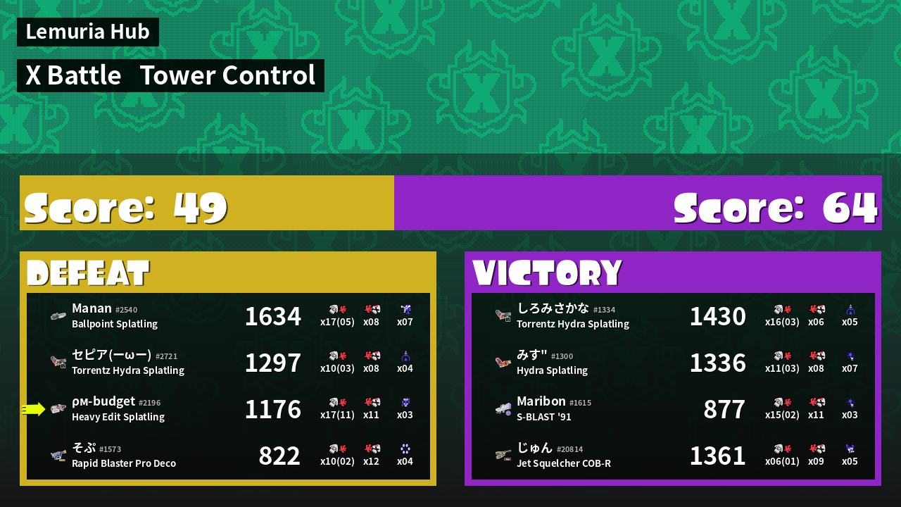 | Mode | Tower Control - X Battle | ||