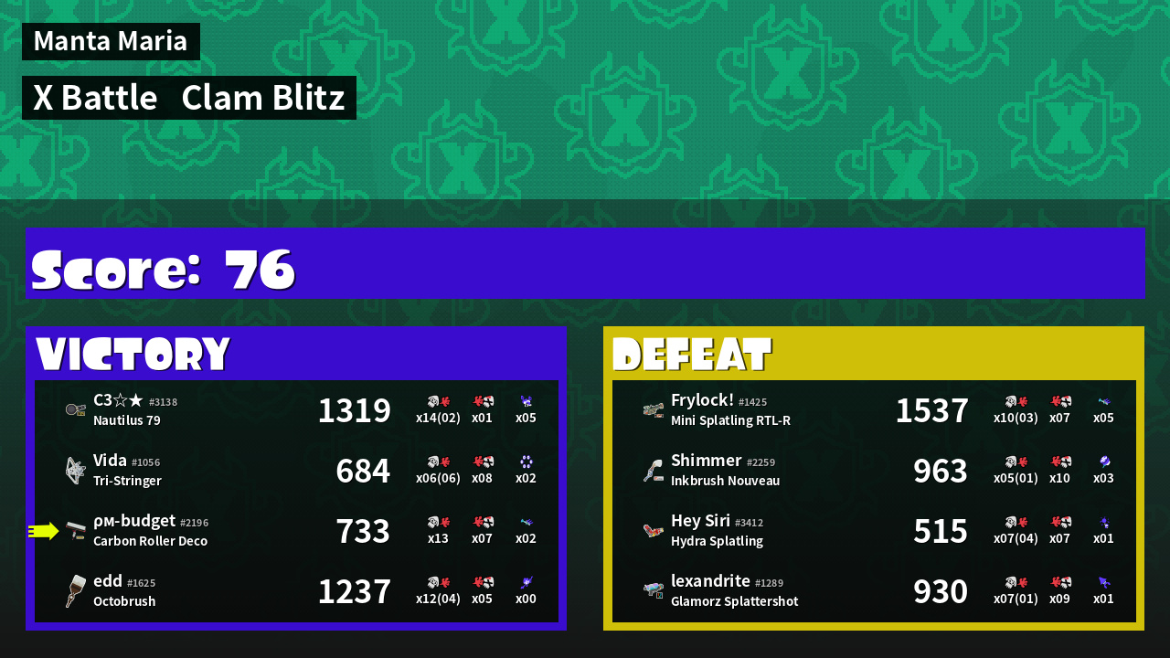 | Weapon | Carbon Roller Deco ( Burst Bomb / Trizooka) | ||