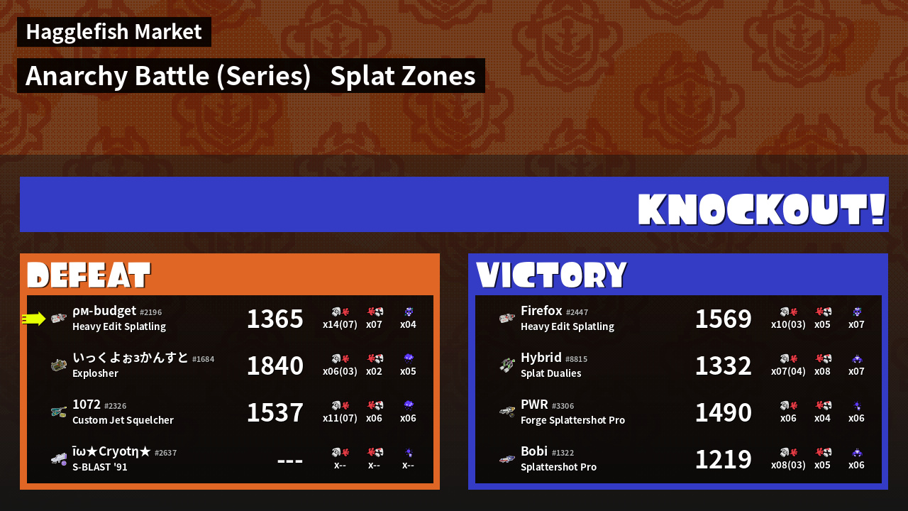 | Mode | Splat Zones - Anarchy Battle (Series) | ||