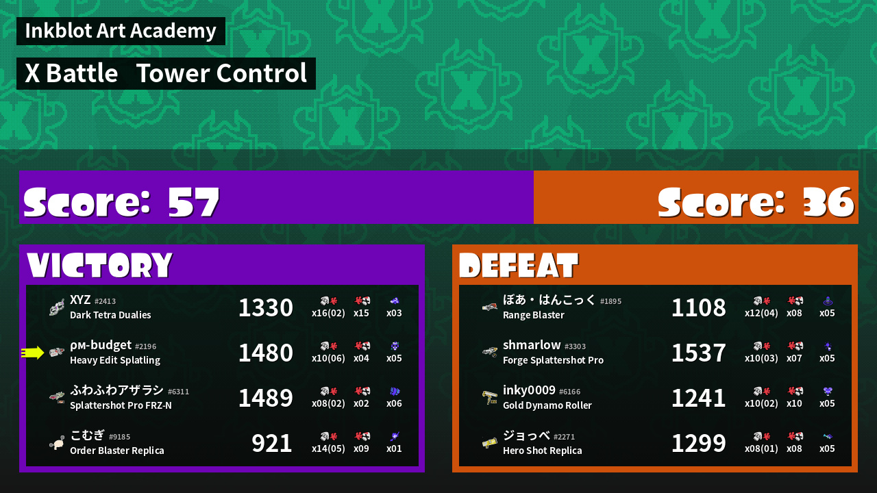 | Mode | Tower Control - X Battle | ||