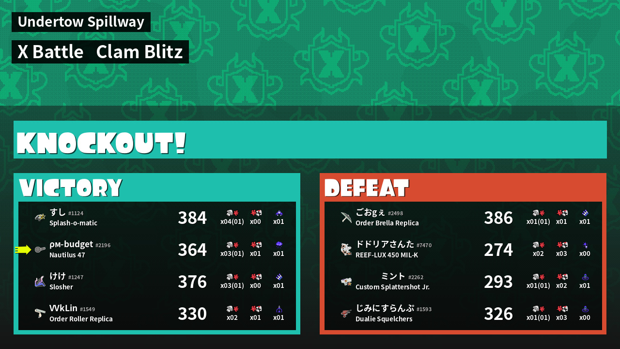 | Mode | Clam Blitz - X Battle | ||