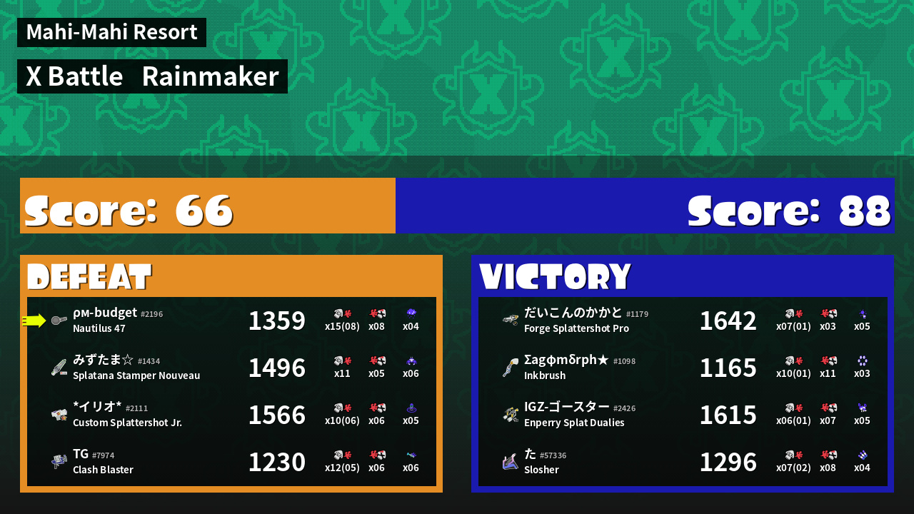 | Mode | Rainmaker - X Battle | ||