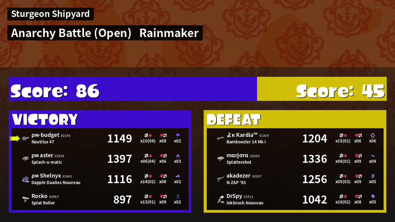| Mode | Rainmaker - Anarchy Battle (Open) | ||