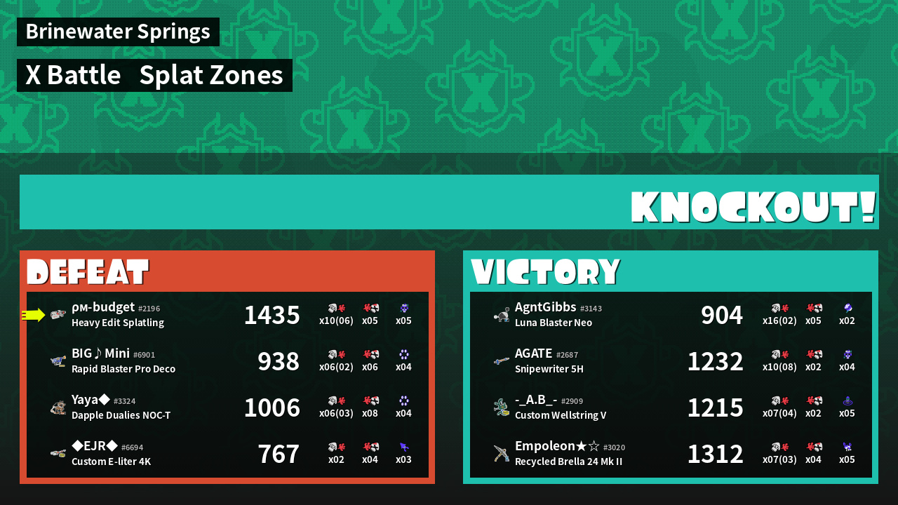 | Mode | Splat Zones - X Battle | ||