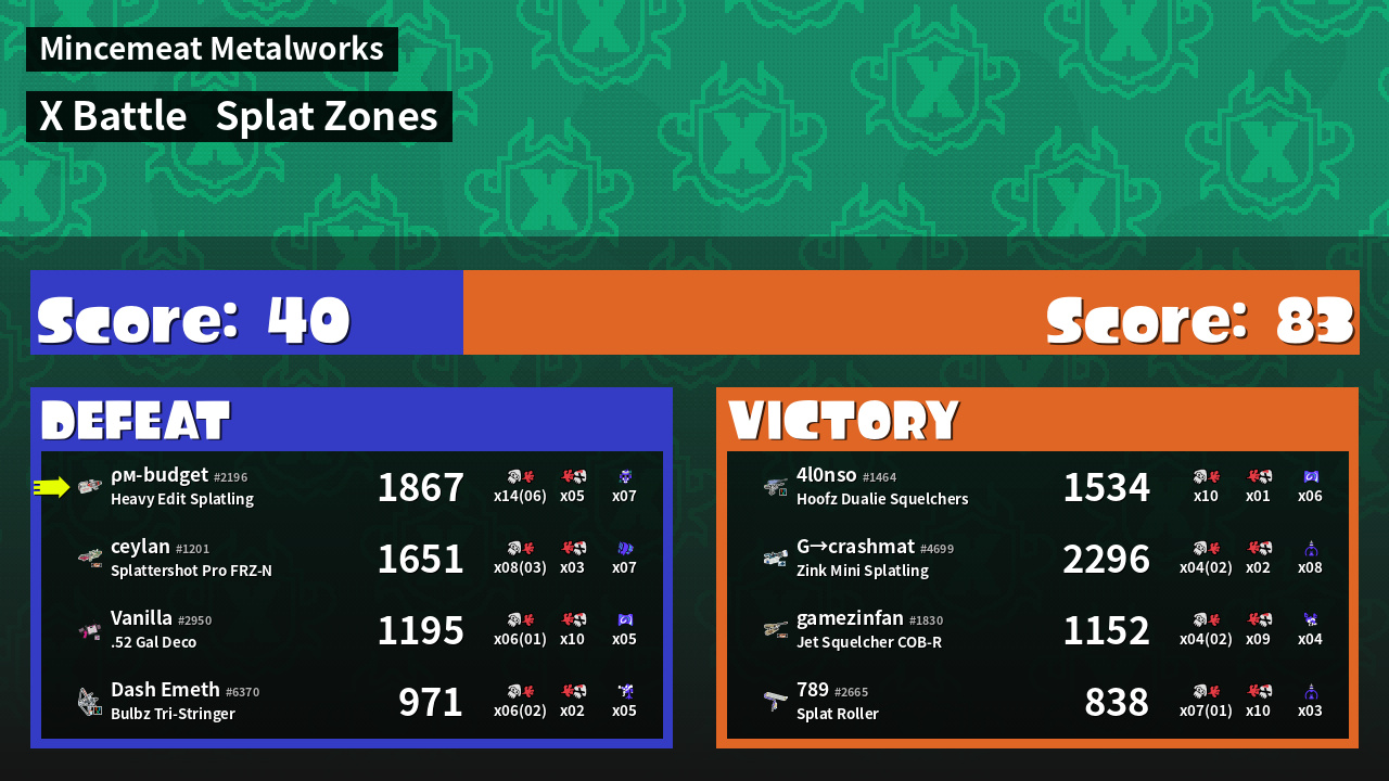 Kills / Deaths | 8 + 6 / 5 > Kill Ratio: 1.60 | ||