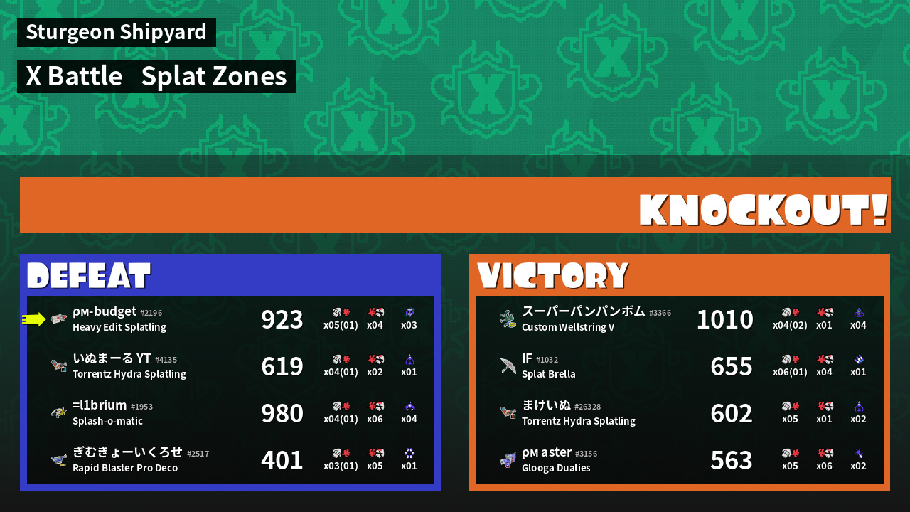 | Mode | Splat Zones - X Battle | ||