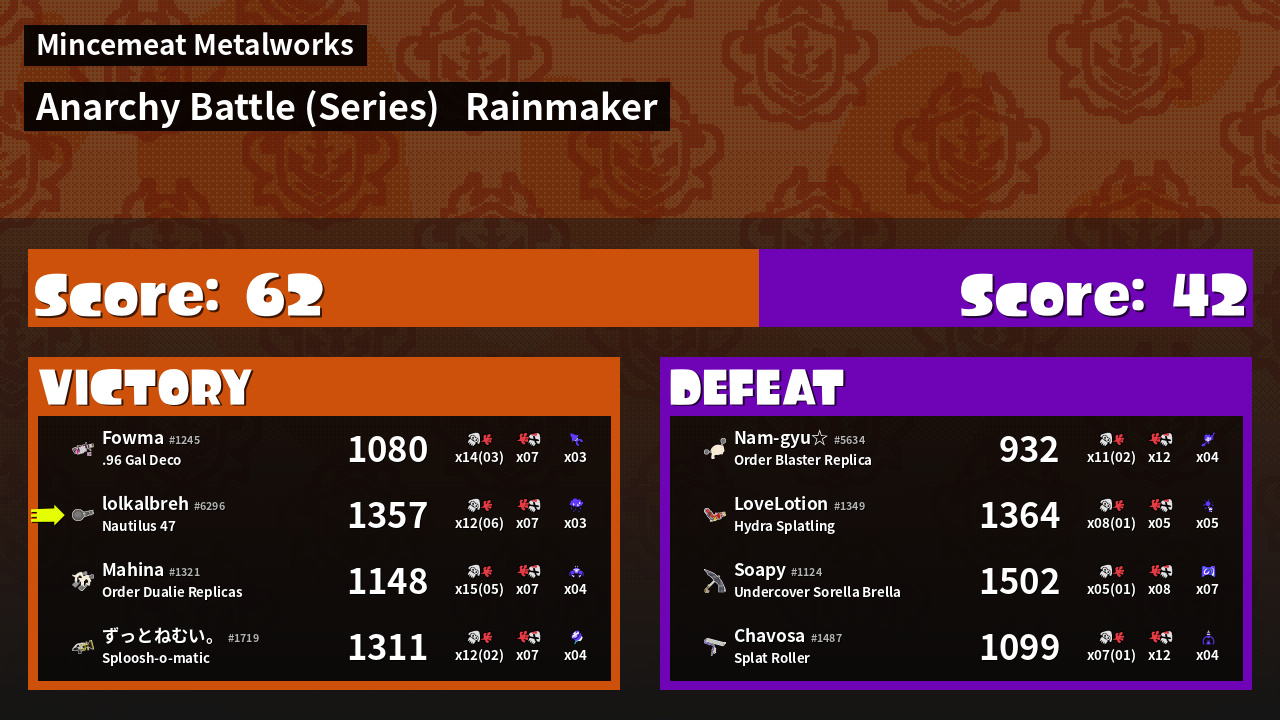 Kills / Deaths | 6 + 6 / 7 < Kill Ratio: 0.86 | ||