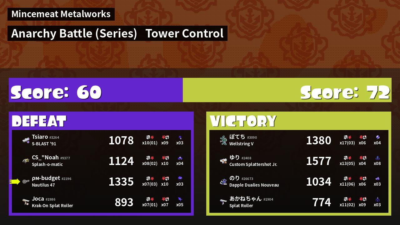 | Medals | #1 Turf Inker #1 Splat Assister #1 Tower Stopper | ||