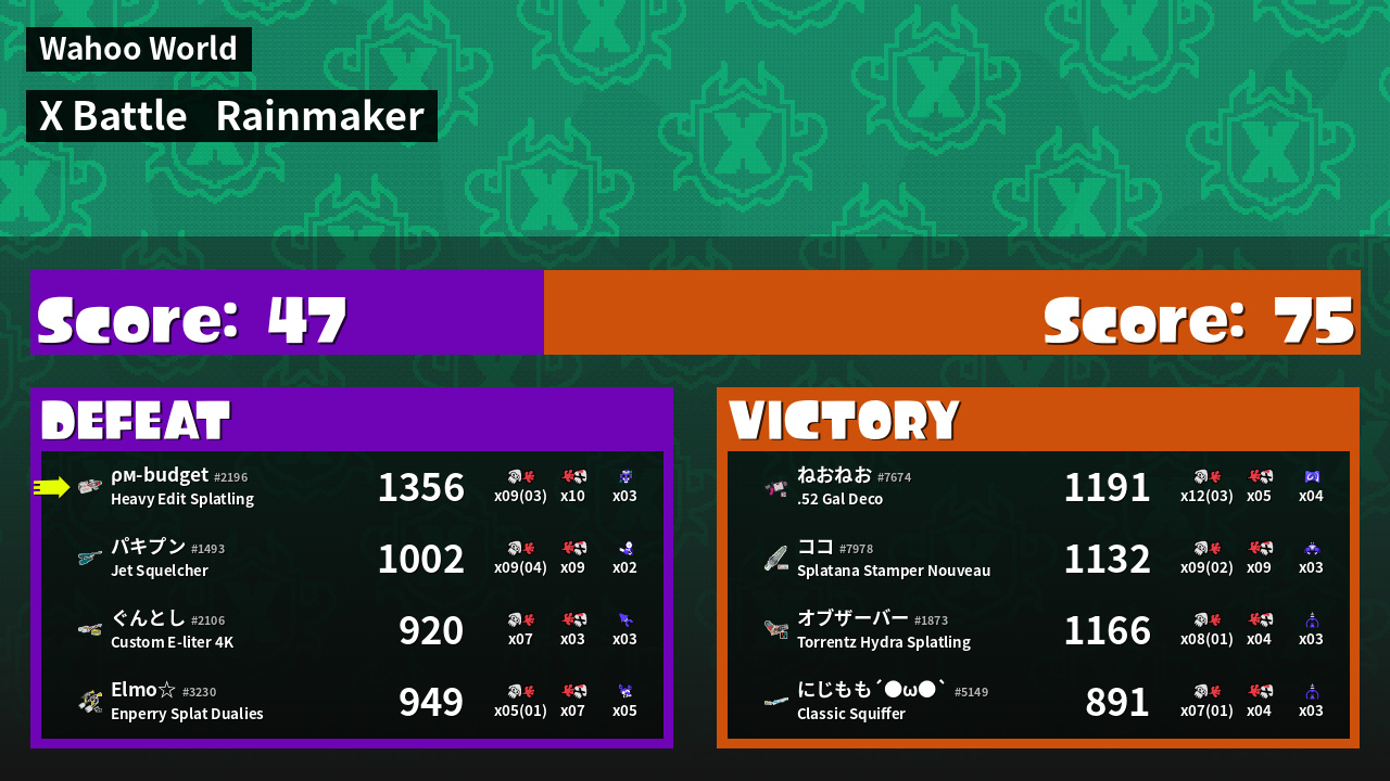 | Mode | Rainmaker - X Battle | ||