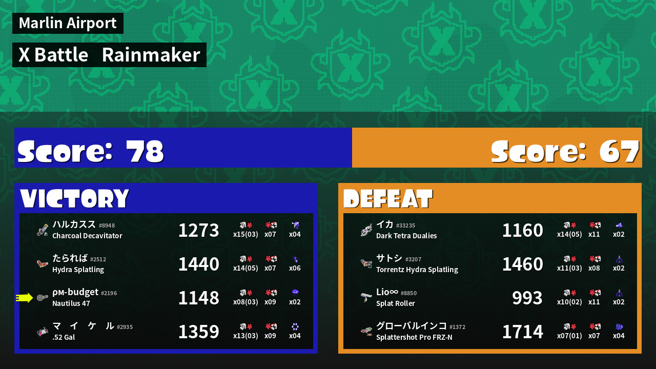 | Weapon | Nautilus 47 ( Point Sensor / Ink Storm) | ||