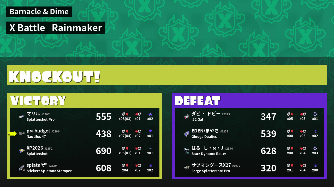 | Weapon | Nautilus 47 ( Point Sensor / Ink Storm) | ||