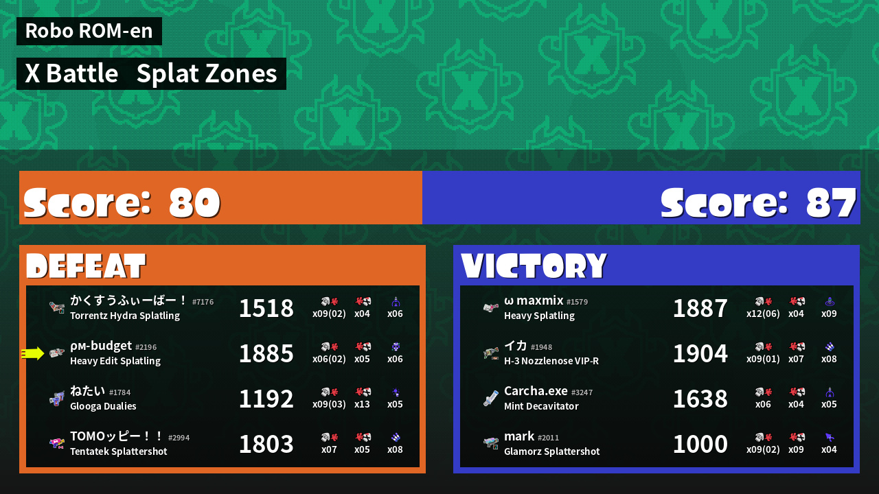 | Mode | Splat Zones - X Battle | ||
