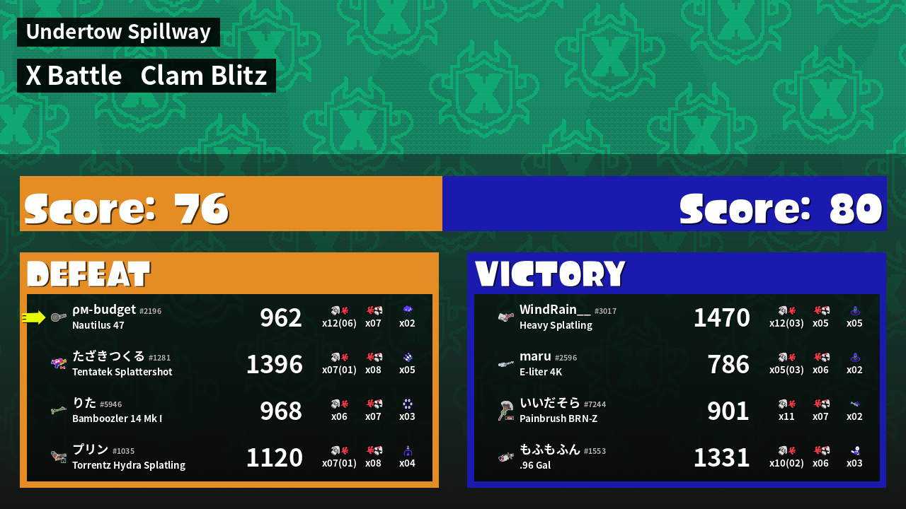 | Mode | Clam Blitz - X Battle | ||