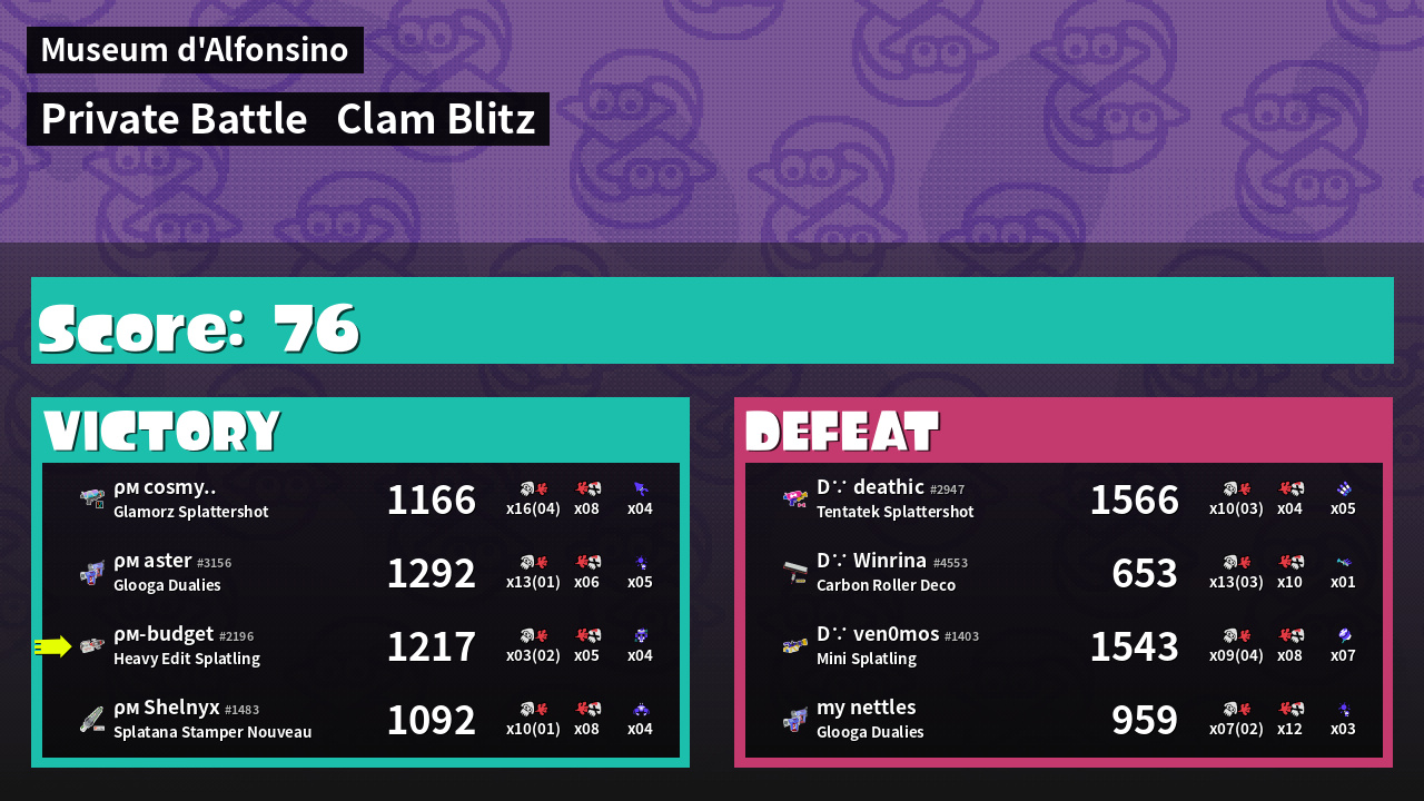 | Mode | Clam Blitz - Private Battle | ||